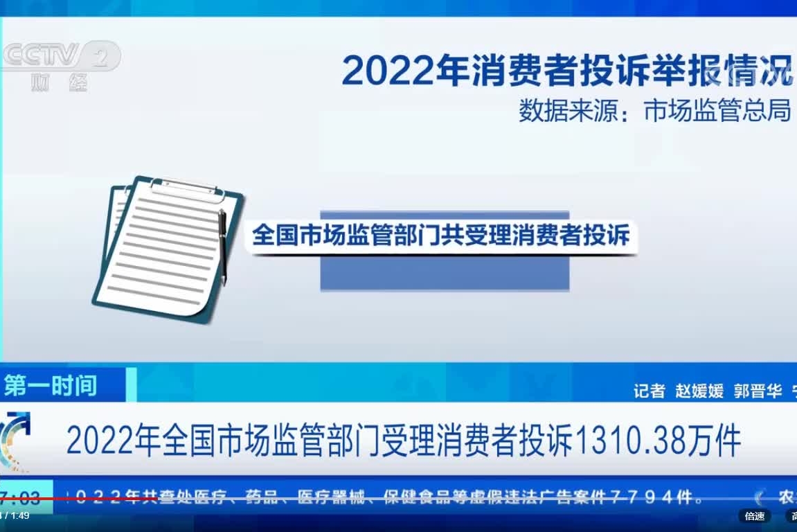 2022年全國市場監(jiān)管部門受理消費者投訴1310.38萬件