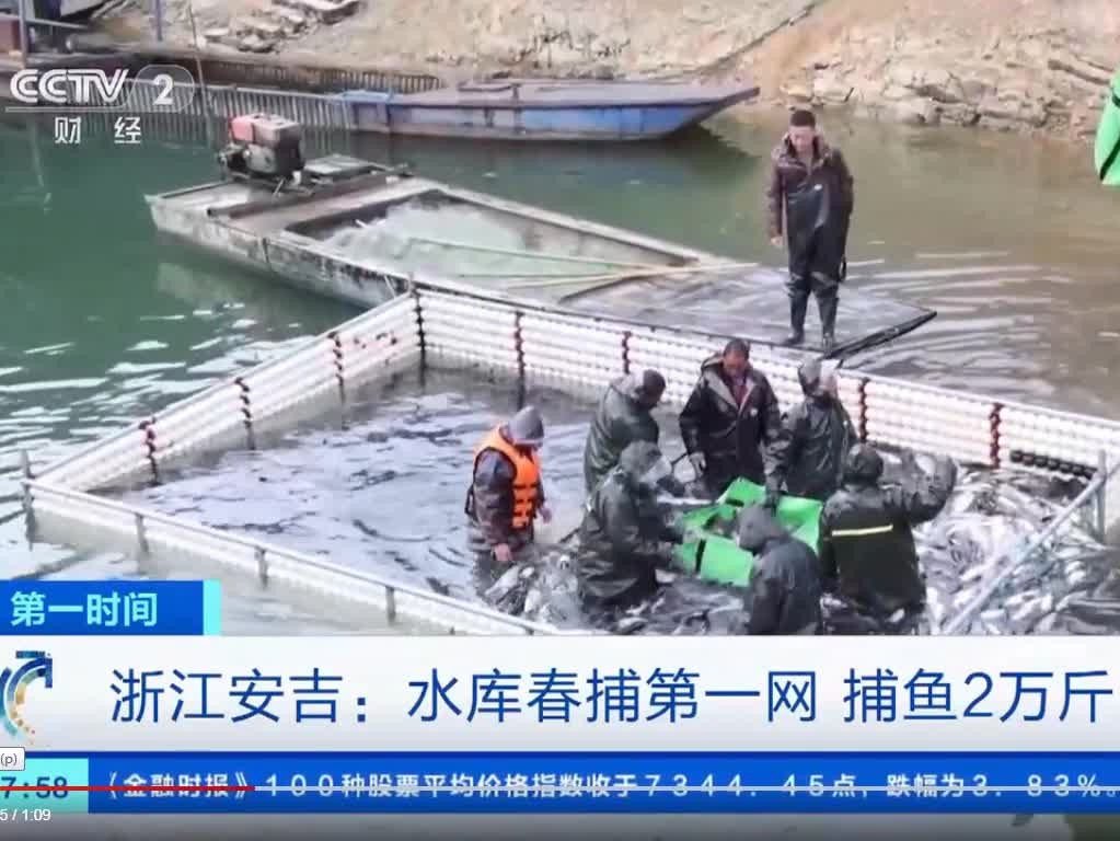 浙江安吉:水庫春捕第一網(wǎng) 捕魚2萬斤