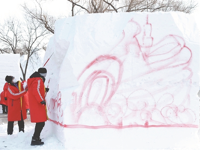 大學生雪雕比賽開鏟