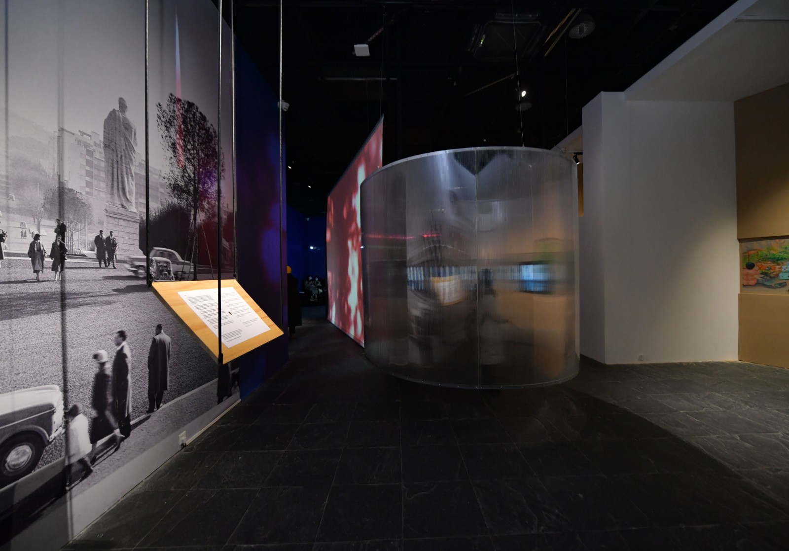 空間與空間的交疊、空間中的空間以作品圖像、檔案重建與場景搭建等形式,散落于展覽的各個角落之中。陳淑瑜在開幕式的視頻致辭中提到:“展覽是關(guān)于藝術(shù)作品看不見的本質(zhì),是我們用藝術(shù)作品可見的實體部分去建構(gòu)展覽的空間,去容納內(nèi)心不可見的部分。對我來說,這是展覽的意義,也是展覽的開始。”[8]