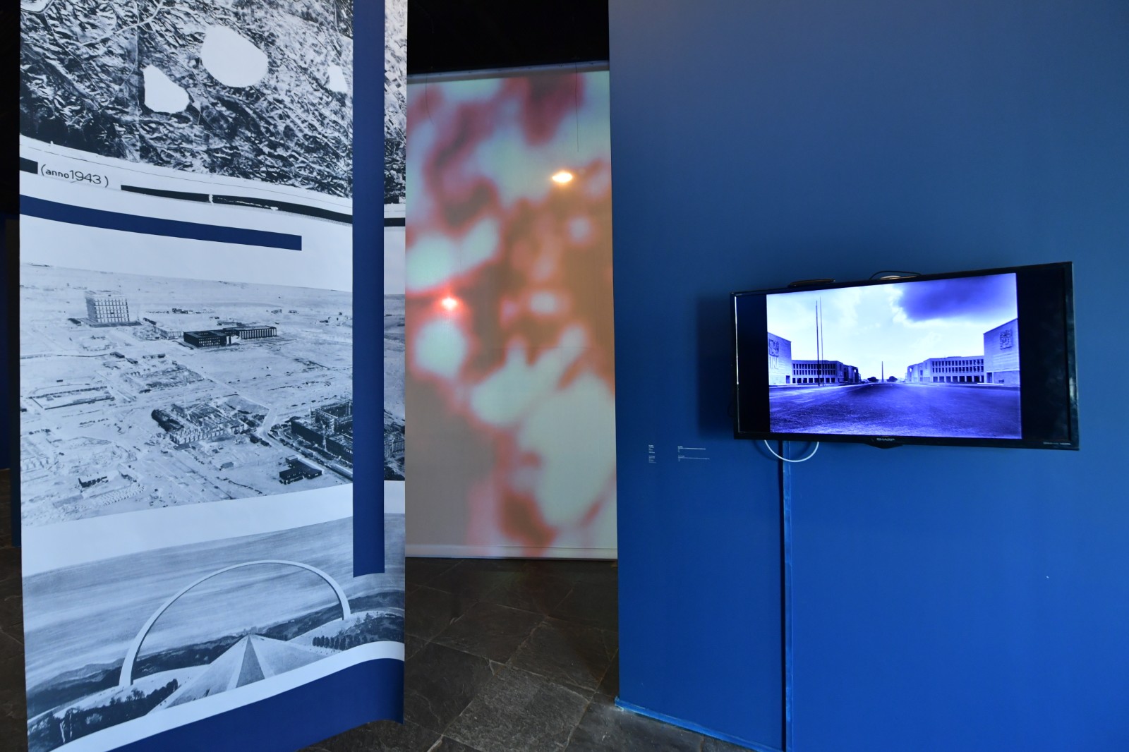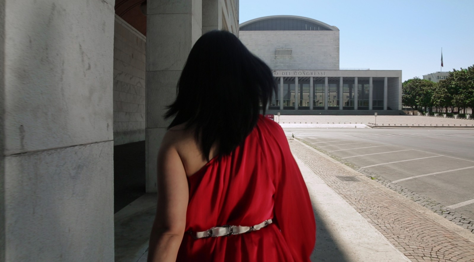 梅·海瑟格(Maj Hasager)《我們將在盲點相遇》是展覽呈現(xiàn)的最后一件作品,其講述了關(guān)于羅馬新城EUR區(qū)(Esposizione Universale di Roma)里的菲律賓移民的故事。這座由墨索里尼親自監(jiān)督設(shè)計的,以法西斯美學(xué)構(gòu)想出來的烏托邦城市,直至1960年才建成并被逐步被開發(fā)為羅馬新的富人區(qū)。海瑟格把眾多意大利導(dǎo)演在EUR區(qū)攝制的紀(jì)錄片、電影所刻畫的城市公共記憶,與這群定期在市中心一座教堂的地下室聚會的移民社群一同放入她的影像作品中,影像記錄了這個群體的閑暇時光,以一種個人的、私密的視角探索了菲律賓移民的私人記憶與生活如何融入并生存于這座有著強(qiáng)大歷史記憶的城市之中。正如約翰·伯格(John Berger)在《第七人》中的論述:“兩群不同的人在任何情況下,永遠(yuǎn)都是共性大于差異性的。只是由于種種原因,環(huán)境蒙蔽了人們的眼睛?!盵7]我們看得見的是歷史的記憶碾壓而過留下的軋痕以及其帶來的城市變遷,而看不見的是居于其中的人是如何在此種變遷中安放自我的記憶與故事。從這個立意來看,展覽所討論的議題似乎又回溯到了“公共”與“私人”,“歷史”與“記憶”之間的連接,然而涉及的場域已經(jīng)擴(kuò)展到了一個城市或是一種文化以外。