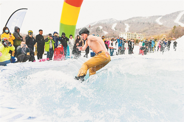 開(kāi)幕式結(jié)束后,參加活動(dòng)的發(fā)燒友們乘纜車(chē)前往三鍋盔山頂參加光豬大滑行活動(dòng)。此次光豬節(jié)由亞布力滑雪旅游度假區(qū)主辦,亞布力陽(yáng)光度假村承辦。在長(zhǎng)達(dá)146天的超長(zhǎng)雪季后,亞布力陽(yáng)光度假村將于3月29日正式封板。圖片由亞布力陽(yáng)光度假村提供