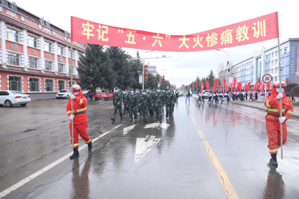 隨后防火警笛鳴起,由消防車、防火運(yùn)兵車、后勤保障車30余輛機(jī)動車組成的車隊(duì)和千余名職工群眾組成的游行隊(duì)伍在鎮(zhèn)內(nèi)主要街道繞行一周,營造了濃厚的防火宣傳氛圍。
