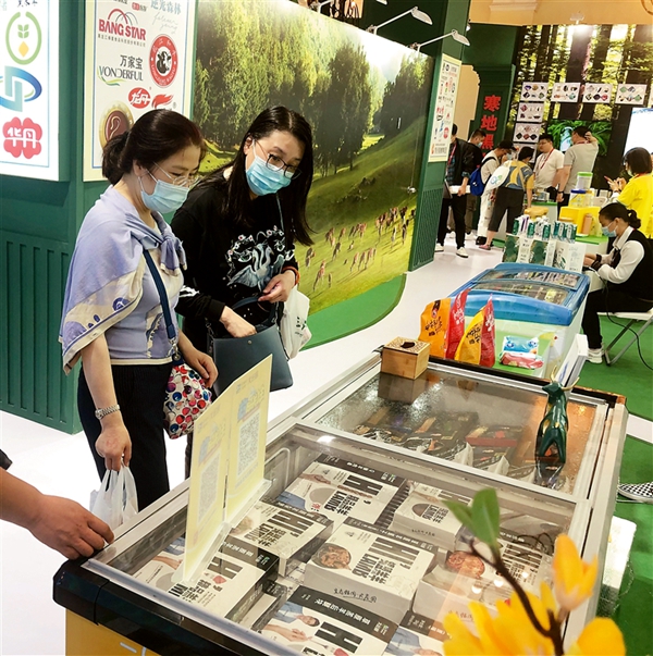 大莊園肉業(yè)集團(tuán)股份有限公司展臺(tái)前,40多歲的王女士說起新冠肺炎疫情期間該公司的幾公里免費(fèi)配送服務(wù),“每次收到身穿防護(hù)服的工作人員送來放心的牛羊肉制品,心里都充滿感激之情。”
