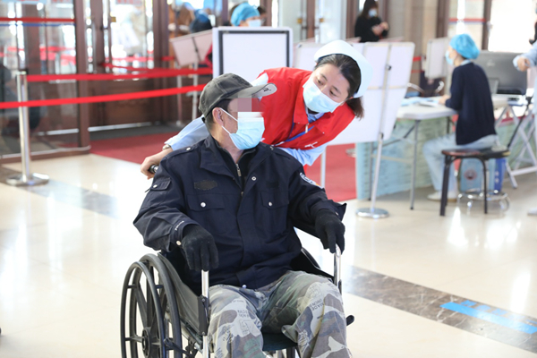 “小心慢走,我來(lái)扶著您?!薄奥c(diǎn)走,小心腳下?!薄澳?,我來(lái)推您!”每周的星期三都是醫(yī)務(wù)社工“行動(dòng)”的日子,她們?cè)陉?yáng)光大廳及急診通道幫助出入院患者及家屬接送物品,幫助每一位入院待產(chǎn)的準(zhǔn)媽媽將行李送到病房,為出院患者進(jìn)行物品“轉(zhuǎn)運(yùn)”,同時(shí)做咨詢(xún)、引導(dǎo),維持就診秩序。醫(yī)務(wù)社工積極投身臨床一線,為患者及家屬提供便利的就醫(yī)體驗(yàn),為患者提供安全、有序的診療環(huán)境,踐行著“全心全意為人民服務(wù)”的初心。