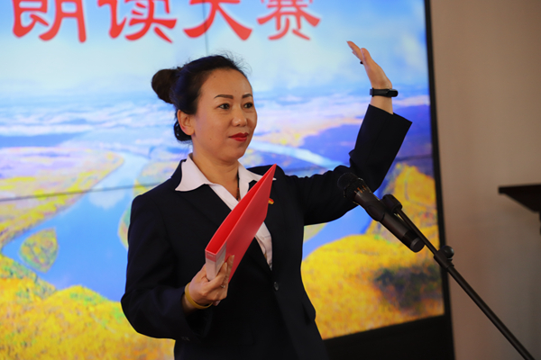 阿木爾林業(yè)局科級(jí)干部胡玉鳳在主持朗讀比賽