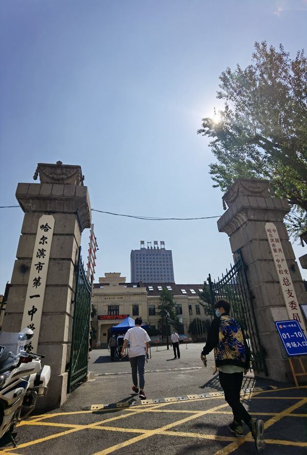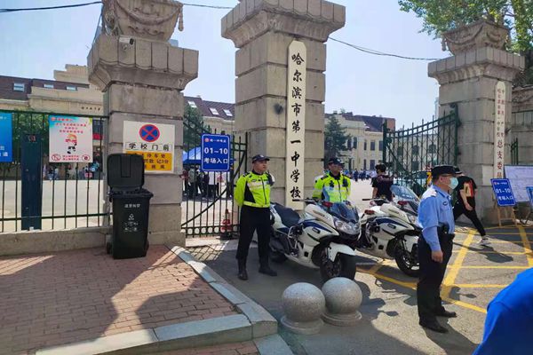 今早8點(diǎn),哈爾濱市第一中學(xué)門(mén)前雖然人頭攢動(dòng),但車(chē)減速,人低語(yǔ)。