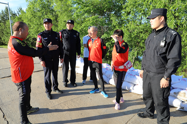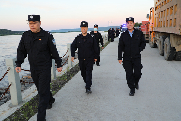 漠河市副市長、公安局黨委書記、局長姜明君,局黨委委員李永鳴、張華武分別帶領各突擊小分隊與北極鎮(zhèn)政府緊密對接,劃分責任片區(qū),定人定崗巡回查看黑龍江江堤水位、道路排水設施和人防工程等情況。突擊隊中,科級以上干部、部門負責同志近三分之一,黨員民警近五分之二,主動請纓沖在防洪防汛第一線,充分發(fā)揮模范帶頭作用。