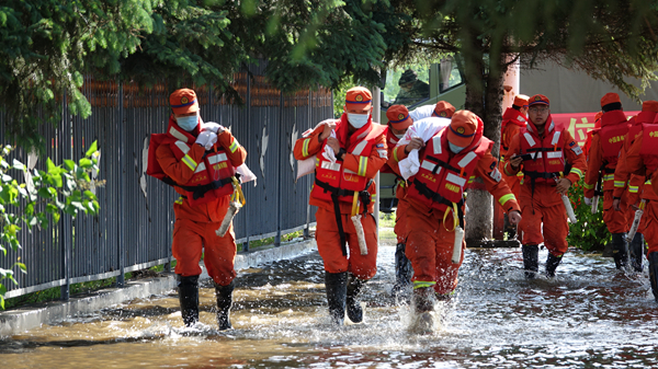 18日凌晨,記者在位于塔河鎮(zhèn)中央大街東端的塔河農(nóng)商銀行機(jī)關(guān)辦公樓前看到,漲勢(shì)很快的洪水正迅猛地漫過中央大街,向街邊的農(nóng)商銀行機(jī)關(guān)大樓、稅務(wù)局辦公樓和電視臺(tái)辦公樓等處涌來,而這幾個(gè)沿街單位地勢(shì)較低,很容易受到洪水的侵襲。為盡量控制洪水水勢(shì),最大限度減少洪水造成的損失,塔河縣防指迅速調(diào)集人力物力,主要領(lǐng)導(dǎo)靠前指揮,廣大救援官兵奮勇爭先,在幾個(gè)臨街單位外圍用沙袋圍壩攔堵,并調(diào)動(dòng)多臺(tái)高壓水泵抽水抗?jié)常o幾個(gè)單位的救援提供了極大地助力,也為其自救創(chuàng)造了更多的時(shí)機(jī)。
