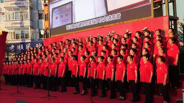 一曲曲動人的旋律蕩氣回腸,一陣陣激昂的歌聲傳遍四方。塔河縣局領(lǐng)導(dǎo)、縣直機(jī)關(guān)干部、林業(yè)局職工、公安民警、學(xué)校學(xué)生、老年大學(xué)學(xué)員等紛紛參與其中,表達(dá)著共同的祝愿共同的心聲。精彩的表演,讓演出一次次掀起高潮,也贏得了觀眾的陣陣熱烈掌聲。展演歷時近兩個多小時,最后在縣直機(jī)關(guān)干部表演的合唱曲目《我的祖國》《保衛(wèi)黃河》那震撼人心的歌聲中圓滿落下帷幕。