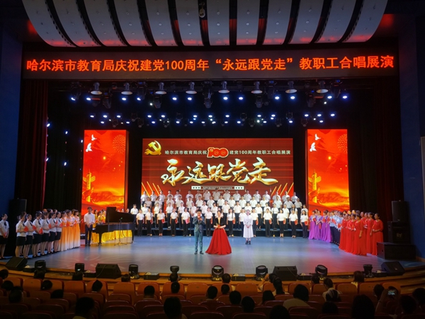 此次合唱展演是哈爾濱市教育局慶祝中國共產(chǎn)黨成立100周年系列活動(dòng)之一,是推動(dòng)黨史學(xué)習(xí)教育走深走實(shí)的生動(dòng)載體,市教育局通過開展參與度高、覆蓋面廣、互動(dòng)性強(qiáng)的展演活動(dòng),營造同慶百年華誕、共創(chuàng)歷史偉業(yè)的濃厚氛圍,凝聚起全市教育系統(tǒng)廣大黨員干部和教職員工永遠(yuǎn)跟黨走、奮進(jìn)新征程的磅礴力量,為建設(shè)黨和人民滿意的教育事業(yè)貢獻(xiàn)教育人的擔(dān)當(dāng),以優(yōu)異成績向黨的百年華誕獻(xiàn)禮。