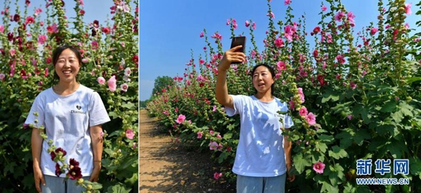 拼版照片:左圖為杜云芝在太原市小店區(qū)王吳村鮮花種植基地;右圖為杜云芝在鮮花種植基地進(jìn)行直播(7月7日攝)。今年30歲的杜云芝外出務(wù)工近10年,作為一名資深銷(xiāo)售人員,她有著豐富的直播經(jīng)驗(yàn)。近年來(lái),太原市小店區(qū)王吳村大力發(fā)展鄉(xiāng)村旅游,杜云芝回到家鄉(xiāng),用手機(jī)記錄鄉(xiāng)村變化,宣傳家鄉(xiāng)美景。