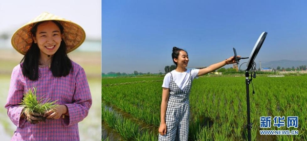 拼版照片:左圖為程玉嬌在太原市晉源區(qū)三家村水稻田里;右圖為程玉嬌在水稻田里進(jìn)行直播(7月9日攝)。今年24歲的程玉嬌2019年留學(xué)回國(guó)后,選擇了返鄉(xiāng)創(chuàng)業(yè)發(fā)展稻魚(yú)菜綜合種養(yǎng)農(nóng)業(yè)。晉源區(qū)三家村出產(chǎn)的大米遠(yuǎn)近聞名,程玉嬌在社交平臺(tái)上開(kāi)通了雙語(yǔ)直播,在科普水稻知識(shí)的同時(shí)拓展銷(xiāo)售渠道,不僅生意做得風(fēng)風(fēng)火火,自己也變成了小有名氣的“網(wǎng)紅”。