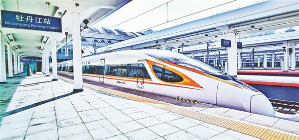 復(fù)興號高寒動車組首次停靠在牡丹江站。黑龍江日報全媒體記者 邵國良攝