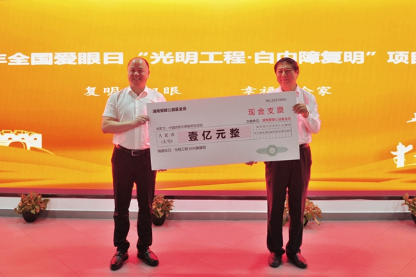 今年愛眼日“光明工程·白內(nèi)障復(fù)明”項(xiàng)目座談會(huì)上,愛爾眼科通過愛眼公益基金會(huì)捐贈(zèng)1億元助力鄉(xiāng)村振興