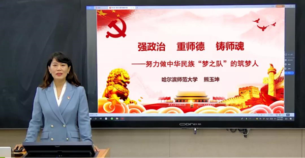 據(jù)了解,本次活動(dòng)是黑龍江省教育廳慶祝第37個(gè)教師節(jié)的系列活動(dòng)之一,由哈爾濱師范大學(xué)協(xié)辦、全國(guó)中小學(xué)繼續(xù)教育網(wǎng)技術(shù)支持舉辦?;顒?dòng)以“賡續(xù)百年初心,擔(dān)當(dāng)育人使命”為主題,由哈爾濱師范大學(xué)馬克思主義學(xué)院熊玉坤副教授講授題為《強(qiáng)政治、重師德、鑄師魂——努力做中華民族“夢(mèng)之隊(duì)”的筑夢(mèng)人》的思政課。課程圍繞提升教師思想政治素質(zhì)和師德水平、更好擔(dān)負(fù)起立德樹人根本任務(wù)展開,分為新時(shí)代加強(qiáng)和改進(jìn)師德師風(fēng)建設(shè)的政治要求、新時(shí)代師德師風(fēng)建設(shè)的豐富內(nèi)涵、新時(shí)代強(qiáng)化師德師風(fēng)建設(shè)的對(duì)策思考三個(gè)部分,系統(tǒng)回答了新時(shí)代中小學(xué)教師思想政治和師德師風(fēng)建設(shè)為什么、是什么、怎么做的問(wèn)題。