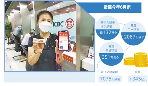 數(shù)據(jù)顯示,截至9月10日,工行北京分行試點(diǎn)的數(shù)字人民幣應(yīng)用場(chǎng)景達(dá)8萬(wàn)多個(gè),集中在與社會(huì)民生緊密相關(guān)的交通出行、餐飲住宿、購(gòu)物消費(fèi)、旅游觀光、醫(yī)療衛(wèi)生、通信服務(wù)、票務(wù)娛樂7大類場(chǎng)景。中國(guó)人民銀行近期發(fā)布的《中國(guó)數(shù)字人民幣的研發(fā)進(jìn)展》白皮書顯示,截至今年6月末,數(shù)字人民幣試點(diǎn)場(chǎng)景已超132萬(wàn)個(gè),開立個(gè)人錢包2087萬(wàn)余個(gè)、對(duì)公錢包351萬(wàn)余個(gè),累計(jì)交易筆數(shù)7075萬(wàn)余筆、金額約345億元。