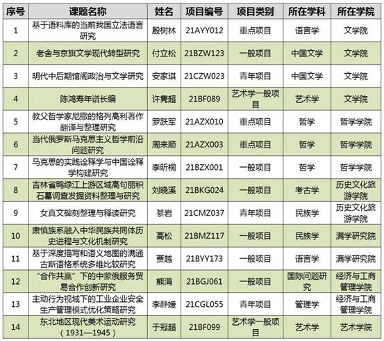 黑龍江大學(xué)2021年國家社科基金項(xiàng)目立項(xiàng)名單