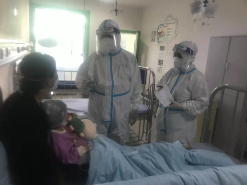 9月29日,科主任邸順祥和護(hù)士長(zhǎng)閆秀彬共同進(jìn)入醫(yī)學(xué)留觀病區(qū)進(jìn)行日常查房。查房進(jìn)行到中午發(fā)熱門(mén)診迎來(lái)了一位特殊患兒,這是一例確診病例的第一密切接觸者,家屬均被隔離,由于突發(fā)疾病由集中隔離點(diǎn)的醫(yī)護(hù)人員乘專門(mén)車(chē)輛護(hù)送至發(fā)熱門(mén)診。邸順祥主任坐鎮(zhèn)指揮,閆秀彬護(hù)士長(zhǎng)配合消毒,等待最終結(jié)果。當(dāng)患兒核酸檢測(cè)結(jié)果回報(bào)陰性,除外新冠病毒感染,經(jīng)由集中隔離點(diǎn)人員按規(guī)定接回時(shí),醫(yī)護(hù)人員們?cè)卺t(yī)學(xué)留觀區(qū)已工作了5小時(shí)。