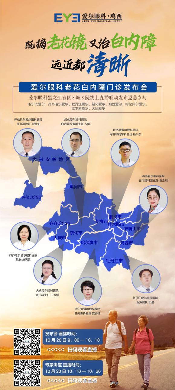 10月20日上午9點整,愛爾眼科黑龍江省區(qū)8城8院線上直播聯(lián)動發(fā)布會邀您參與,帶您直擊老花白內(nèi)障手術,為中老年人群的優(yōu)質(zhì)視野和高品質(zhì)生活保駕護航。(愛爾眼科)