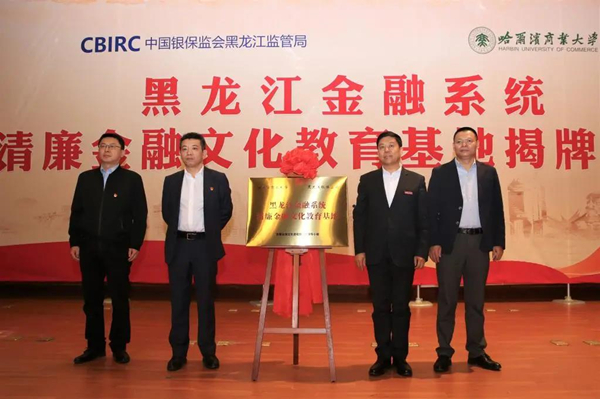 隨后,中國(guó)銀保監(jiān)會(huì)黑龍江監(jiān)管局黨委書記、局長(zhǎng)王柱,哈商大黨委書記孫先民共同為黑龍江金融系統(tǒng)清廉金融文化教育基地揭牌,標(biāo)志著黑龍江金融系統(tǒng)首個(gè)清廉金融文化教育基地的正式成立,清廉金融文化進(jìn)校園活動(dòng)正式啟動(dòng)。