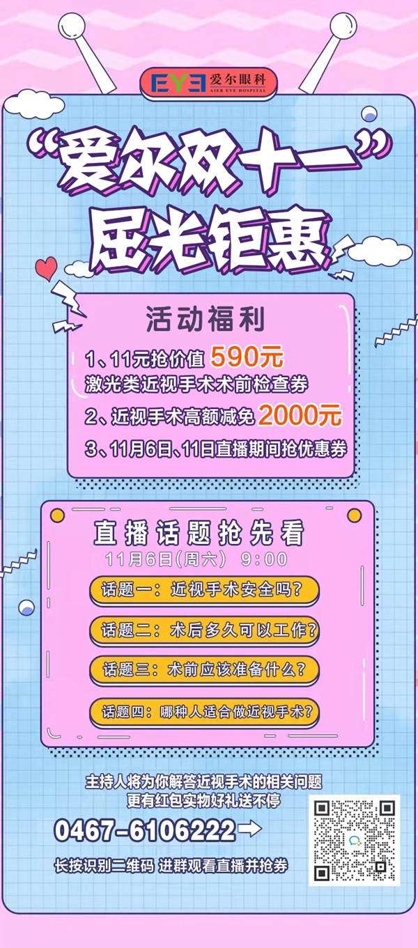 雞西愛(ài)爾眼科醫(yī)院近視手術(shù)雙十一鉅惠來(lái)襲!