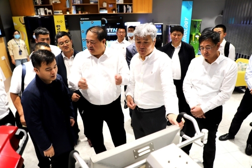 考察團(tuán)一行在景域驢媽媽集團(tuán)文化體驗中心、旅游科技體驗館、智慧景區(qū)展廳三個展廳,在景域驢媽媽集團(tuán)助理總裁國慶華、景域驢媽媽集團(tuán)北部大區(qū)商業(yè)總監(jiān)李玲、景域景區(qū)投資運(yùn)營集團(tuán)品牌運(yùn)營中心高級總監(jiān)陸玉敏三位高管的引導(dǎo)下,看圖片、觀專題片、聽介紹,詳細(xì)了解了旅游與科技、數(shù)字應(yīng)用,以及黨的建設(shè)、企業(yè)文化、所獲榮譽(yù)等發(fā)展與創(chuàng)新歷程,對“誠信、激情、創(chuàng)新、多贏”八字理念留下了深刻印象??疾靾F(tuán)成員親身體驗了云鏡、VR、掃碼存取、掃碼騎車、智能拍照機(jī)、紀(jì)念章售賣機(jī)、文創(chuàng)自動售貨機(jī)、旅行洗漱用品套裝自助機(jī)、智能導(dǎo)游機(jī)等科旅融合設(shè)備,仔細(xì)聆聽了集數(shù)據(jù)中心、電子門票、運(yùn)行監(jiān)控、密度檢測等為一體的智慧景區(qū)平臺應(yīng)用方面的介紹情況。