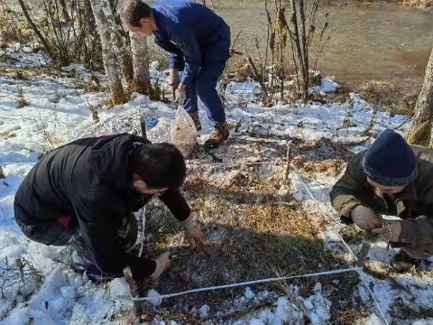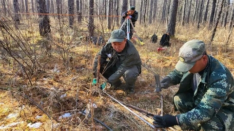 10月,大興安嶺已山寒水冷,早7時這些年輕的“小伙子”們就和局森林調(diào)查設(shè)計大隊的工友,一起來到呼中國家級自然保護區(qū)2號線的森林火災(zāi)風險外業(yè)調(diào)查現(xiàn)場,開啟了新一天的一線“習(xí)武”生活。釘樁、打點、拉繩、圍方……他們動作嫻熟、順暢,一氣合成。