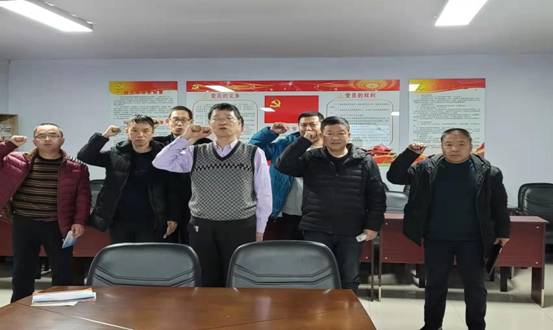 在中國共產(chǎn)黨入黨誓詞展示墻前,黨員干部們面向黨旗,高舉右手,重溫了入黨誓詞,我志愿加入中國共產(chǎn)黨,擁護(hù)黨的綱領(lǐng)......隨時(shí)準(zhǔn)備為黨和人民犧牲一切,永不叛黨?;貞浫朦h過程加固不忘初心、牢記使命,永葆共產(chǎn)黨員政治本色的堅(jiān)定政治信念。