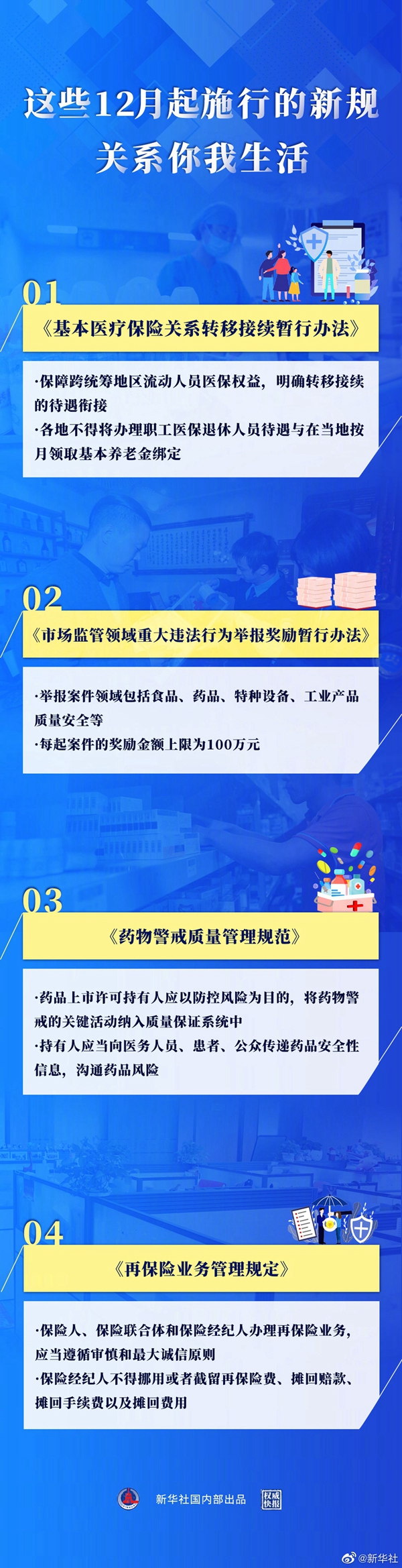 明確醫(yī)保關(guān)系的轉(zhuǎn)移接續(xù)辦法,讓跨統(tǒng)籌地區(qū)流動(dòng)人員的醫(yī)保權(quán)益更有保障;舉報(bào)市場(chǎng)監(jiān)管領(lǐng)域重大違法行為可獲獎(jiǎng)勵(lì),每起案件的獎(jiǎng)勵(lì)金額上限為100萬(wàn)元;進(jìn)一步完善藥物警戒質(zhì)量管理規(guī)范,強(qiáng)化藥品上市許可持有人的安全監(jiān)管責(zé)任……戳大圖,哪條你最期待?(新華社記者白陽(yáng) 海報(bào)設(shè)計(jì)張晨光