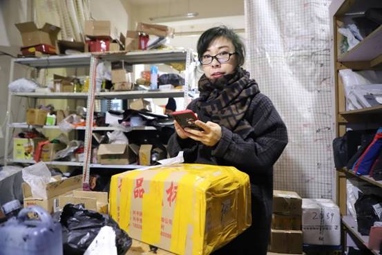 阿木爾林業(yè)局網(wǎng)商孫秀麗在快遞點(diǎn)為客戶準(zhǔn)備發(fā)貨(王力 攝)