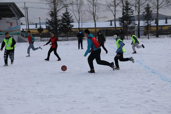 組織開展雪地足球比賽。作為學(xué)校的傳統(tǒng)特色項(xiàng)目,雪地足球的比賽成為全校的焦點(diǎn)。精心繪制的雪地足球場,為同學(xué)們提供了獨(dú)具興安特色的足球樂園。
