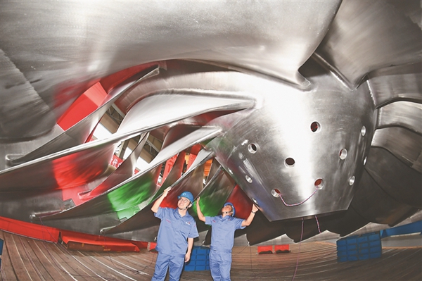 哈電集團(tuán)研制的世界首臺(tái)長(zhǎng)短葉片1000MW白鶴灘精品轉(zhuǎn)輪。圖片由受訪單位提供