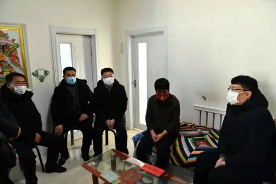 新林林業(yè)局黨委副書(shū)記、局長(zhǎng)張鶴松一行在困難職工劉玉峰家中走訪慰問(wèn)(趙文財(cái) 攝)