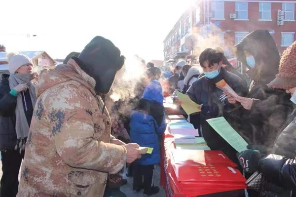 黑龍江經(jīng)濟(jì)網(wǎng)訊( 劉妍 王曉微 記者仉慶華)日前,嘉蔭縣烏云鎮(zhèn)的中心街道上,村民們緊緊環(huán)繞在“除陋習(xí) 樹新風(fēng)”主題宣傳臺周圍,參加由嘉蔭縣新時(shí)代文明實(shí)踐中心組織的迎新春綜合宣傳活動?;顒蝇F(xiàn)場,工作人員圍繞黨的十九屆六中全會精神、鄉(xiāng)風(fēng)文明、疫情防控等內(nèi)容開展全方位宣傳,參加活動的群眾認(rèn)真聆聽,時(shí)而交流談?wù)?、時(shí)而低頭深思,現(xiàn)場其樂融融,一派熱鬧景象。