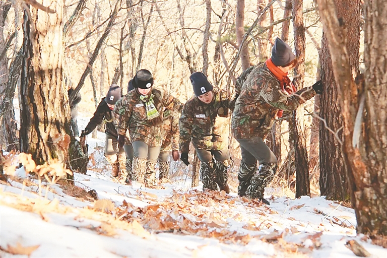 東北虎豹國家公園與俄羅斯濱海邊疆區(qū)接壤,冬季氣候非常寒冷,白天平均溫度在零下20℃。女隊員們穿行在山林中,邊走邊觀察雪后動物留下的足跡,隨時進行記錄,還負責清山清套,有時有的隊員沒注意就會踩入獵套中。