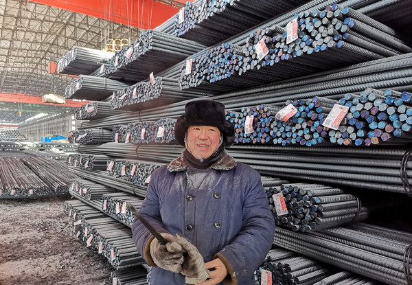 在鋼材成口庫,一位身穿工裝大棉襖、頭戴棉帽,捂得嚴(yán)嚴(yán)實實,臉色微紅的,帽沿掛滿了霜的工人十分引人注目。他叫朱世軍,是軋鋼廠發(fā)運作業(yè)區(qū)丙班的一名普通司索操作員,初一正是白班,主要負(fù)責(zé)鋼材裝運掛鉤和為火車車皮用鐵線鎖車門工作,一但發(fā)運繁忙時,無論白班還是夜班都得在室外作業(yè)裝車,企業(yè)鋼材就靠他們配合裝上火車發(fā)往市場的。“今天得發(fā)運鋼材110車左右,每天上班,在成品庫得上上下下,得走好幾里地,今天就挺冷啊,最低零下26度,冷風(fēng)吹的嘴都木了,既使戴著棉手套,手也都凍僵了,但是,每天一想到通過我的努力,把建龍西鋼鋼材發(fā)往全國各地,為建龍西鋼美好企業(yè)建設(shè)做貢獻(xiàn),我雖然冷點但心里熱乎乎的,真心感到驕傲和自豪。