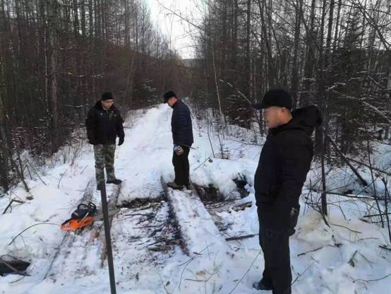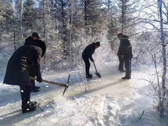 圖為新林林業(yè)局組織人員對營林撫育生產(chǎn)結(jié)冰道路進(jìn)行清理(崔紅霞 攝)