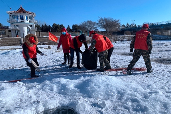 活動中,森調(diào)隊15名志愿者們身著志愿者紅馬甲,手拎垃圾袋,走在濕地兩側(cè)一邊互相提醒,一邊認(rèn)真地?fù)焓坝慰蛠G棄在濕地周邊的礦泉水瓶、煙蒂、碎紙屑、塑料袋等生活垃圾。由于氣溫轉(zhuǎn)暖,冰面濕滑,給清理垃圾工作帶來一定難度,志愿者們克服困難,利用一個多小時的時間,還濕地周邊一片干凈、整潔的環(huán)境。