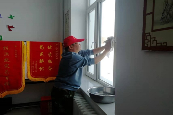 活動(dòng)中,志愿者們分兵兩路,一路手持掃帚、鐵锨,對(duì)場(chǎng)區(qū)周邊垃圾、雜物、冰雪進(jìn)行清理,另一路志愿者們手持掃帚、抹布、墩布等清潔用具紛紛投入到室內(nèi)衛(wèi)生清潔服務(wù)活動(dòng),大家從屋頂?shù)降孛妗淖烂娴酱蹭?、從餐廳到洗漱間來(lái)了一次全方位無(wú)死角的大掃除,利用一個(gè)上午的時(shí)間,還原了一個(gè)干凈整潔的辦公生活環(huán)境。
