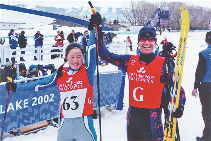 韓麗霞作為我國第一代盲人滑雪運(yùn)動員參加2002年冬殘奧會,取得盲人B3級10公里傳統(tǒng)滑雪第6名。