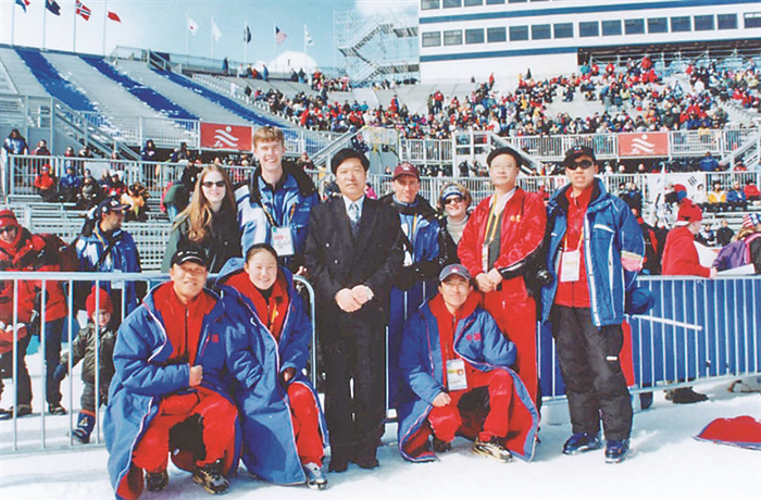 2002年我國首次派團(tuán)參加冬殘奧會,圖為代表團(tuán)成員與志愿者合影。