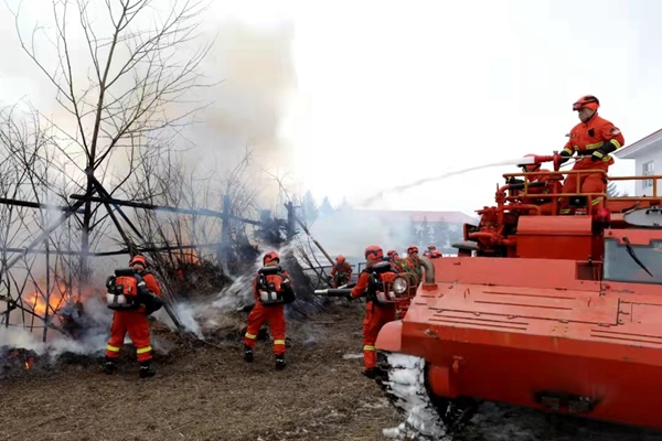 此次實兵演練以塔河縣境內(nèi)發(fā)生森林火災(zāi),塔河縣森林消防大隊、塔河林業(yè)局森林消防大隊兩支隊伍接到塔河縣應(yīng)急局命令,迅速出動、聯(lián)合撲救森林火災(zāi)為背景。在預(yù)設(shè)的模擬火場,烈火熊熊燃燒,專業(yè)隊員們在現(xiàn)場指揮官的指揮調(diào)度下,精神抖擻、行動迅速,利用履帶式森林消防車、風(fēng)力滅火機、背負式軟體水槍、脈沖式水炮、二號工具等設(shè)備,以“邊打邊清、一點突破、兩翼推進、穿插迂回”的方式協(xié)同配合進行滅火作戰(zhàn),同時,還模擬了直升機鎖降運輸隊員和裝備配合作戰(zhàn)。不到二十分鐘,模擬火場達到了“三無”標準,參戰(zhàn)隊伍有序撤離火場,圓滿完成了演練任務(wù)。