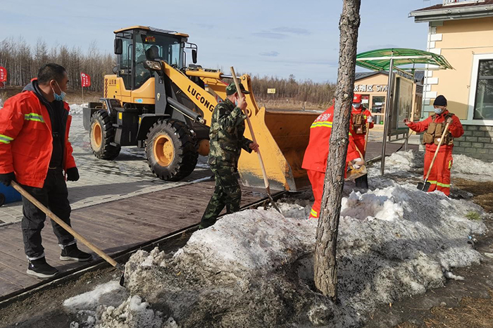 塔源林場組織人員清理北山綜合服務(wù)積雪、雜物(孫秀艷 攝)