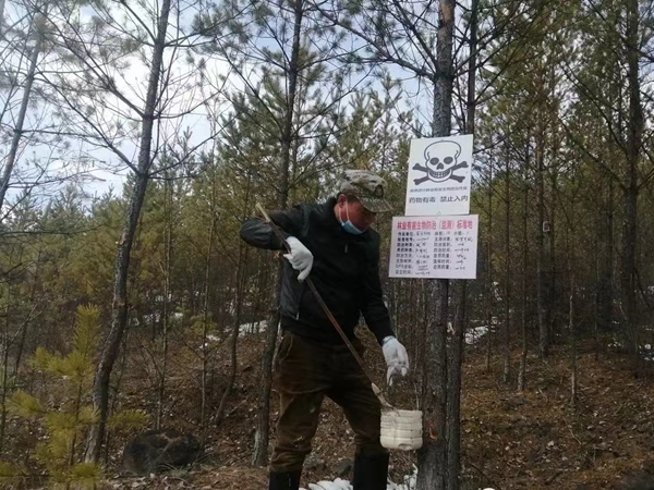 采取科學有效的防治方法,根據(jù)不同區(qū)域、不同特點投放不孕劑和涂抹防啃劑進行防治。為防止人畜中毒,提前張貼林場鼠害防治公告、在防治區(qū)內(nèi)樹立警示標牌,避免人員、牲畜進入投放鼠藥區(qū)域。