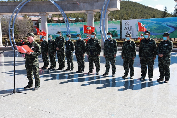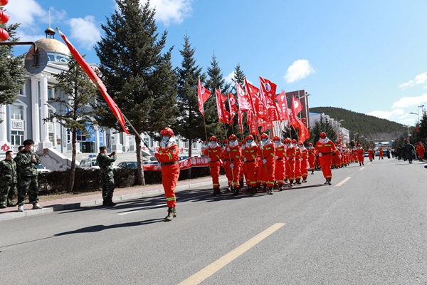 圖為阿木爾林業(yè)局專業(yè)撲火隊(duì)員組成的人員方隊(duì)(王力 攝)