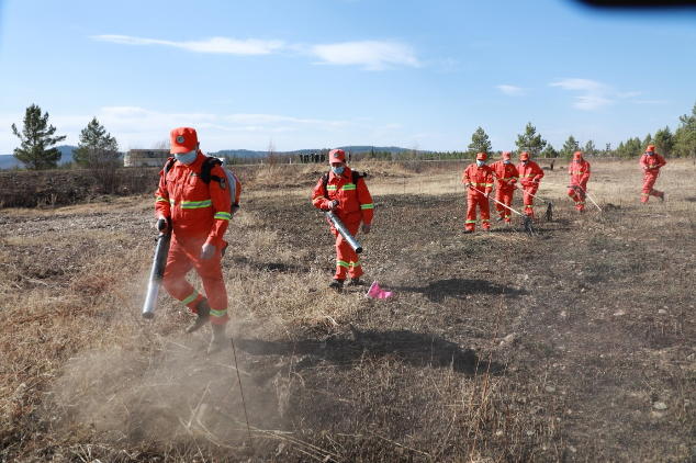阿木爾林業(yè)局紅旗林場(chǎng)舉辦撲火技能競(jìng)賽活動(dòng),防火專(zhuān)業(yè)隊(duì)隊(duì)員模擬實(shí)戰(zhàn)演練“一點(diǎn)兩面、分兵合圍”戰(zhàn)術(shù)(王力 攝)