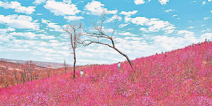 田野、山崗、江邊、林間、石縫……一種專屬紫色和粉色的優(yōu)美悄然而至。日前,黑河市愛輝區(qū)、孫吳縣、遜克縣、五大連池風景區(qū)等地相繼迎來一年一度興安杜鵑花綻放的時節(jié)。在五大連池風景區(qū),慕名而來的打卡網(wǎng)紅用拍攝制作短視頻或直播的方式,帶領各地網(wǎng)友一同欣賞景區(qū)的花開盛景,遜克縣還即將為此舉辦賞花節(jié)。