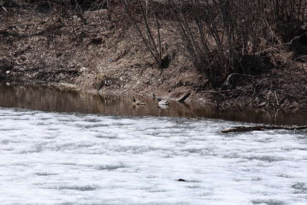 四月底雪還沒有完全融化,挺過寒冬的北噪鴉“小夫妻”開始筑巢繁育后代,綠頭鴨等飛禽迫不及待地飛回家鄉(xiāng)。