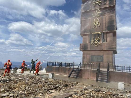 據(jù)相關(guān)負責人介紹,“興安第一塔”因所處位置大興安嶺最高峰而得名,這里常年缺少水源,瞭望員日常生活用水需要從幾公里外的地方人工背運,今天用水噴淋“興安第一塔”尚屬首次。